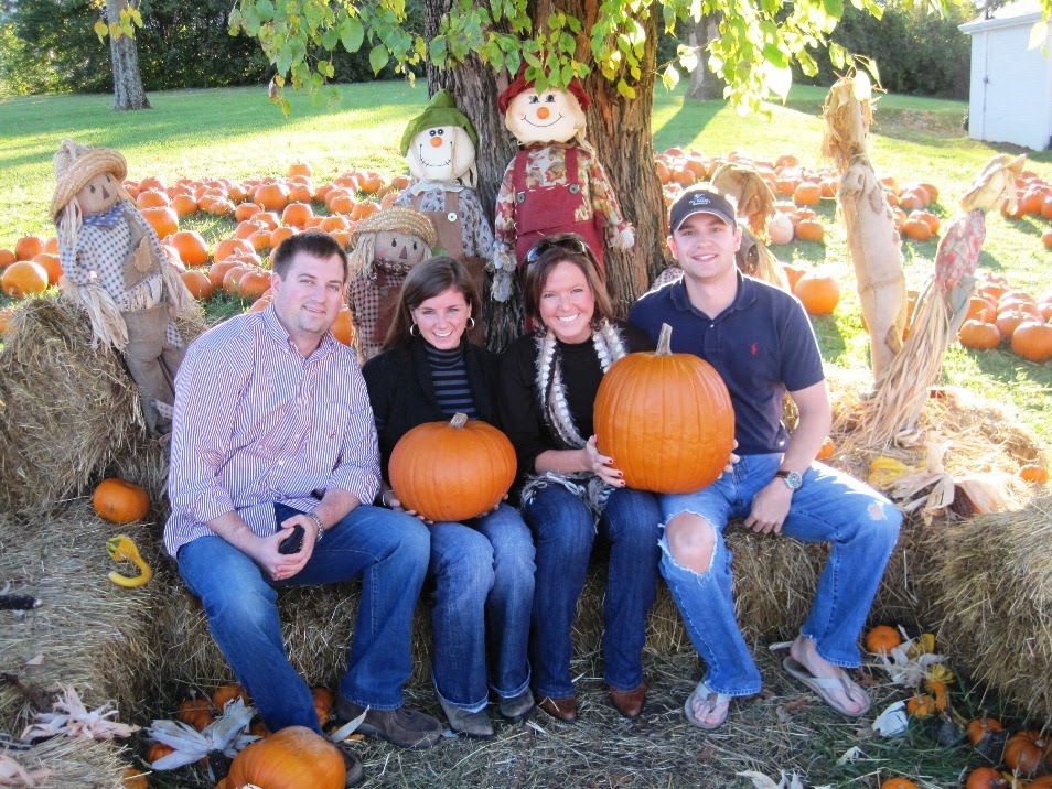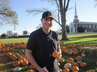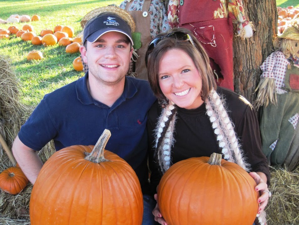 Yesterday afternoon definitely made fall official here in Nashville, as we went to our local pumpkin patch and then went to Jeff’s to carve our new friends! Living in Green Hills, a suburb of Nashville, makes it really convenient to find LOTS of pumpkins…within a mile of our apartment, there are 4 places that I know of-luckily, the church across from us had a big selection and what better way than to give our money to a great cause to support the youth group! Here are the pictures of our little family’s adventure–and yes, we have already agreed we are all going to buy houses next to each other one day so our fun traditions can continue =)
