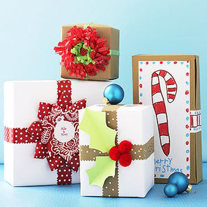 now i am just telling myself there is light at the end of the tunnel= wine at my house and loving friends and family to help me–although the highlight of my weekend will most definitely involve decorating christmas packages. my mother initiated this LONG ago, and it’s a tradition i have taken on… it’s basically a competition to see who’s gifts look the best and BTW: she always wins! my competitive drive is in full force this year i am ready to take over the reign for 2009– i have found the cutest ideas at my favorite sites, too, for some much needed inspiration….