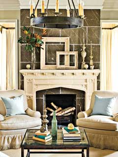 14. Fill a large glass vessel (punch bowl, tall slender vase or squat pillar-candle chamber) with stones for a spa-inspired accent. Pick up pretty ones at a crafts store for less than $3 a bag, or take a walk by a lake or in the woods and pick some up for nothing.