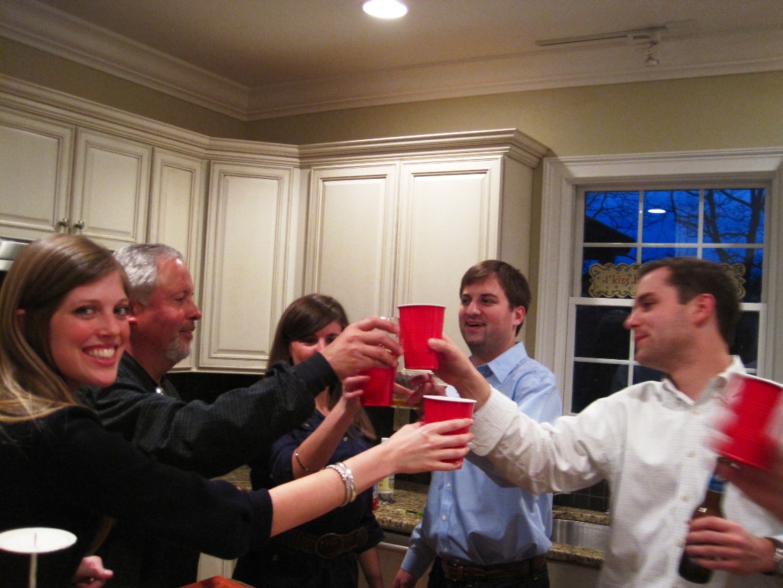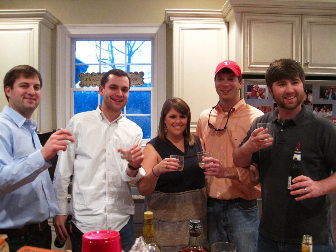 Afterwards, we headed home to meet the boys who had been watching basketball all day.. speaking of, my bracket at work is completely HORRIBLE, but I don’t mind because the VOLS are in the Sweet 16 and that makes me one happy girl!! We met everyone at Lauren’s house for pizza and drinks before the big birthday partay for Lauren and Jeff–so much fun and I think they had a great time celebrating!!
