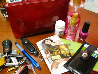 haha!! LOVE your handbag!! 🙂 and i have to admit, when i opened my purse to show what i had in it, i too was like, "WHAT IN THE WORLD!!! Why on Earth do I have this??" lol