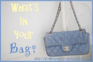 Julie) the “What’s in your Bag?” feature and I thought I would do the same… funny to think I am so organized in my real life, but my purse is like a bottomless pit of stuff!!!