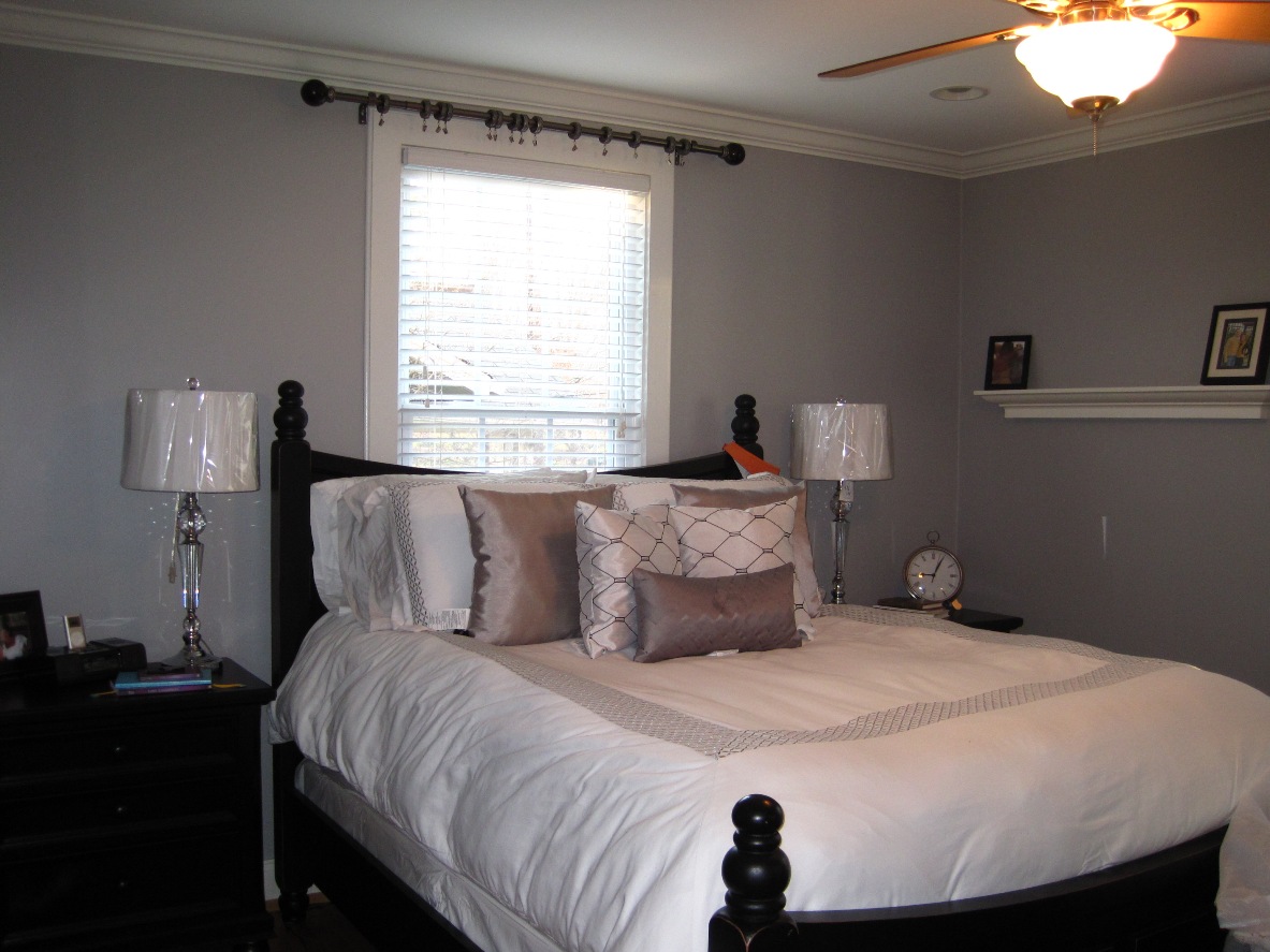 Oooh, I love the white bedding. And I am loving the gray walls. Very pretty!