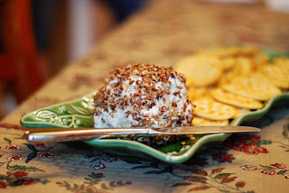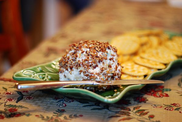 Beat cheeses in medium bowl with mixer on medium speed until well blended. Shape into ball; roll in pecans and then cover. Refrigerate at least 1 hour. Serve as a spread with crackers. So yummy and easy!!