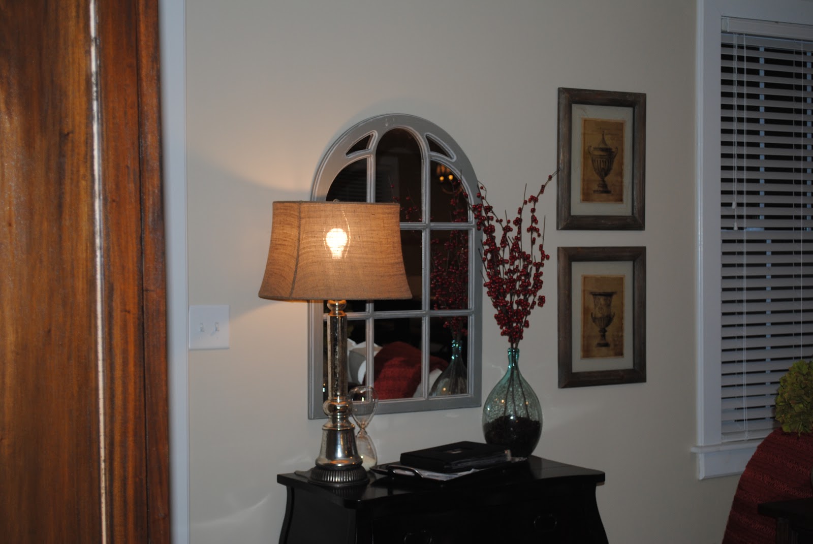 **to finish the room, we’ll be installing a new chandelier and either a mirror or a wine rack/glass holder on the left side of the window