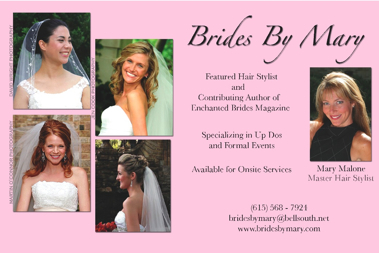 In other news, yesterday was a HUGE success!! I met with the uber: fabulous Mary Malone at Brides by Mary and we talked through everything hair for wedding day… she totally gets the look I am going for and thankfully, this is when my thick coarse hair will actually be beneficial for once considering TN in June= humidity central! She’ll also be working on beautifying my Mom, the bridesmaids, flower girl, and anyone else that needs a little “styling”. Another item to check off my list–woop woop!