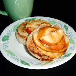 Spread 1 tbsp of PB onto each muffin and top with a few apple slices; in microwave, melt brown sugar, margarine, and cinnamon; drizzle mixture over apple slices and enjoy