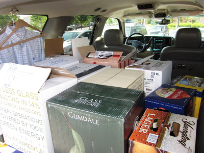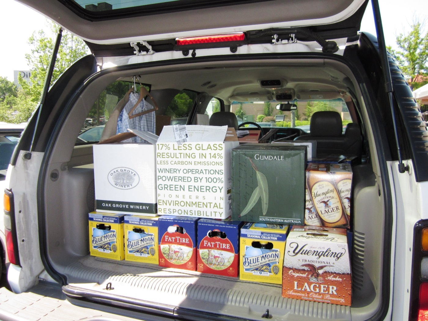 Saturday morning, we left Nashville at the crack of dawn and headed to Atlanta. Fortunately, Jeff is a BIG believer in using Priceline and we got our hotel room at the W hotel in Perimtere for the low low price…now I’m a big fan, too. We spent much of our day shopping: first for all the alcohol for our wedding because of the big cost savings from buying it in Georgia…check out the back of our Tahoe–this is going to be one big party!!