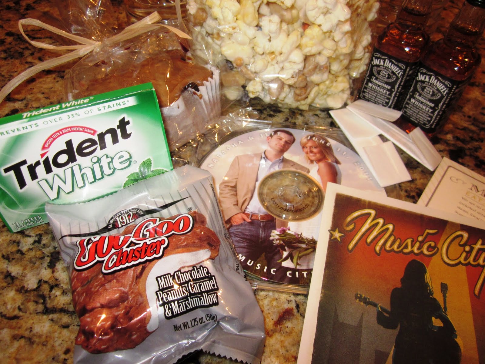 Loved how you stayed with the Tennesee theme. I did the same thing for our wedding since we had a ton of out of town guests. I purchased straw cowboy hats and turned them upside down and filled them with chips/salsa, water, nuts, etc. everything that had to do with Texas!