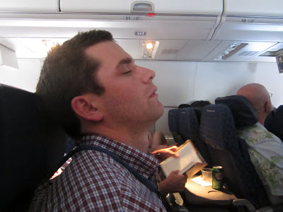 Sunday morning, we woke up at the hotel at before the crack of dawn and headed straight the airport…fast forward to the plane and I had one tired husband on my hands… he’s going to kill me for posting this.