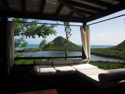 Wow!!! That looks soo pretty! Your watermelon drink combined with that sweet room/bungalow had me sold!