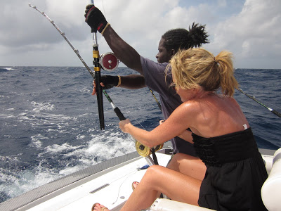 me reeling in a barracuda!! and yes, there was LOTS of seasickness that day
