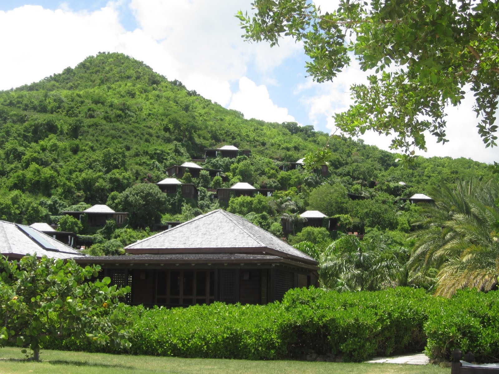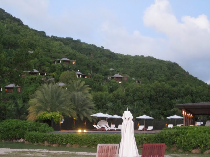 looking up at the bungalows from the beach–ours was the top right one!
