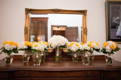 the beautiful bouquets!! white peonies for me and white hydrangea with sweet yellow roses for the bridesmaids and moms