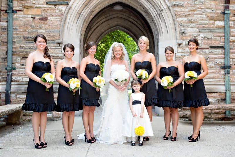 I love the bouquets!! look so great with the black dresses!