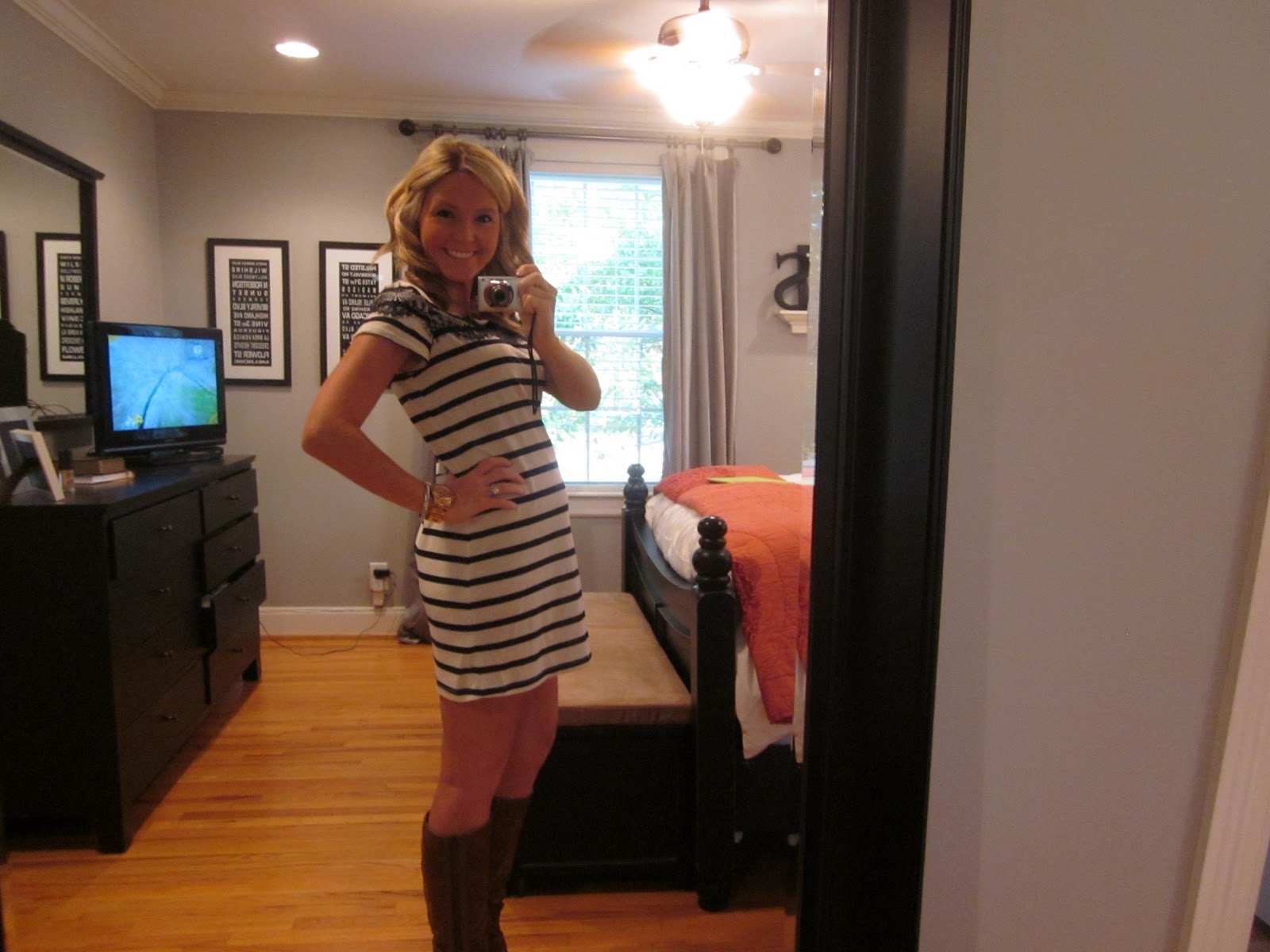 you are so cute!!! love reading your pregnancy updates. and seeing the photos, such a cute dress with the boots đ