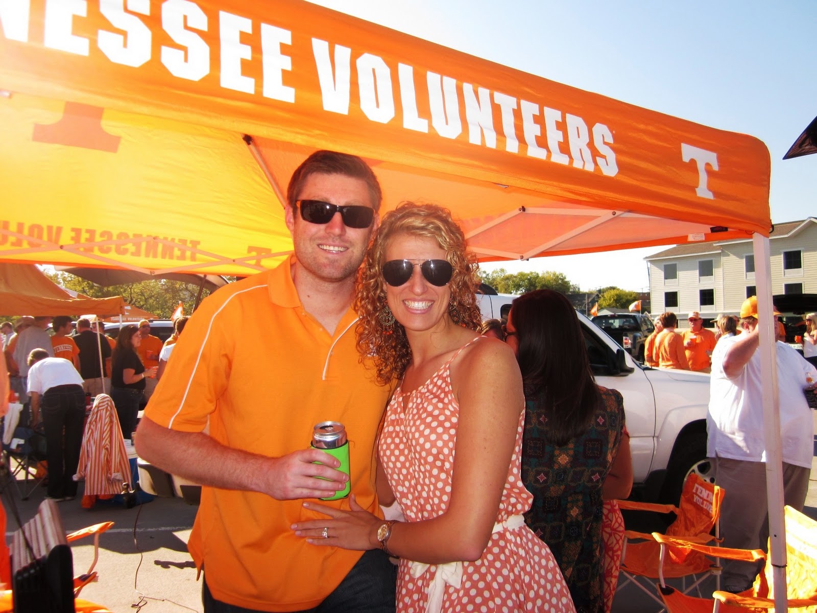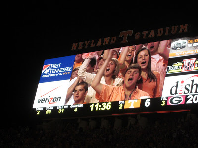 Saturday morning, we got up and got everything ready to head to our parking spot to setup the tailgate. The boys were so sweet to set up everything while Meg and I got to town on the food spread and then friends started parading in…a beautiful day spent with great friends with ideal football weather. Unfortunately, let’s put it this way…the highlight of the game for me was my favorite game day dog and dippin dots as we lost to the GA Bulldogs–a sad day in the life of a Volunteer fan. Boo =(