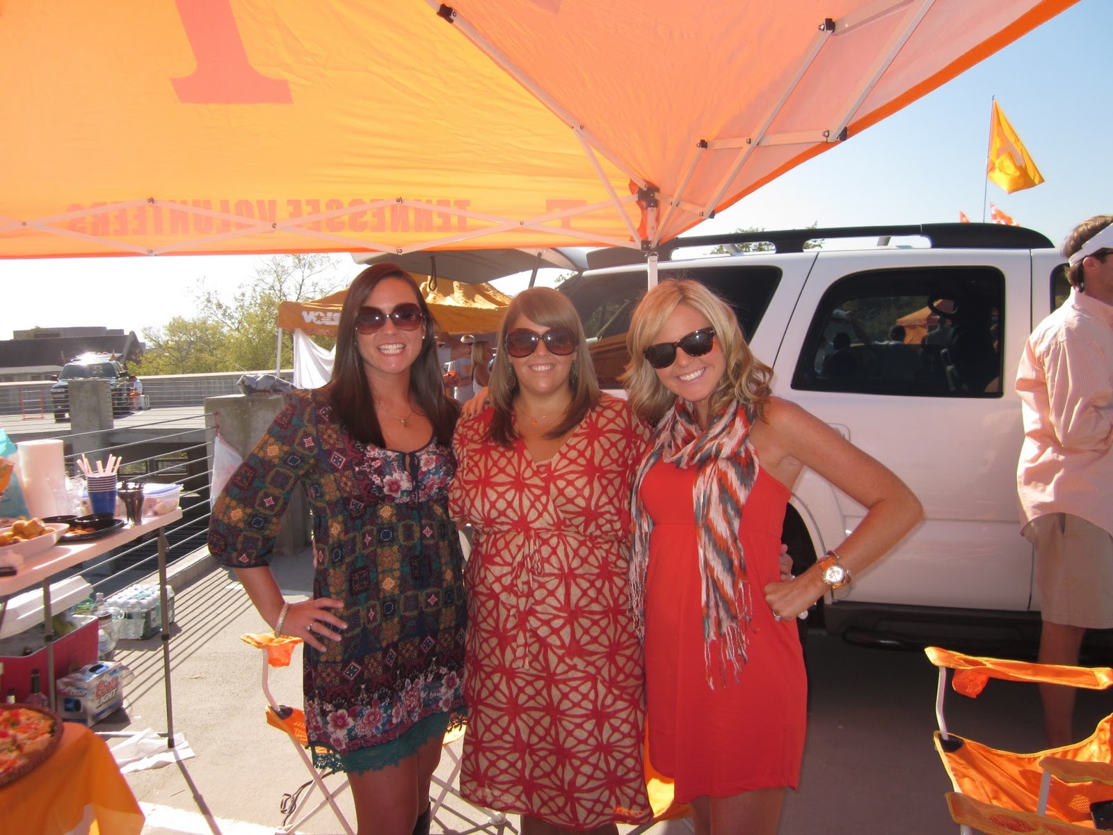Girlfriend you've got the pregnancy glow going on!! The first picture with your pumpkin definitely showcases it, but even tailgating, you are simply stunning, and I loved seeing the little "bambino" (as you would say) pushing in all it's glory against your orange dress!! Congrats momma!