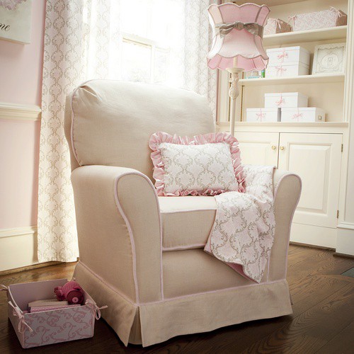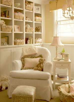 I would definitely want to go this route. It is so classy and elegant and something a baby can grow with. I absolutely adore the chair with the feminine accents.. can I get that in my room? Haha