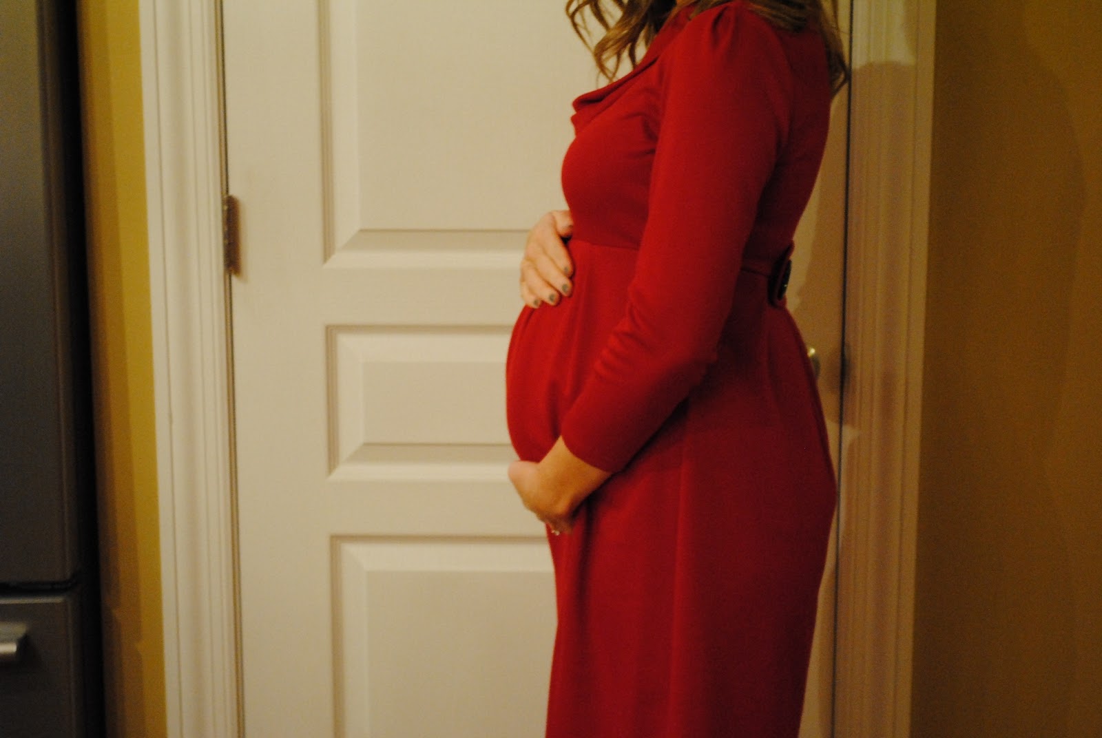 100 days! Yay! Love the red sweater dress! I need to find some maternity pants, I am not loving the bella band 🙁