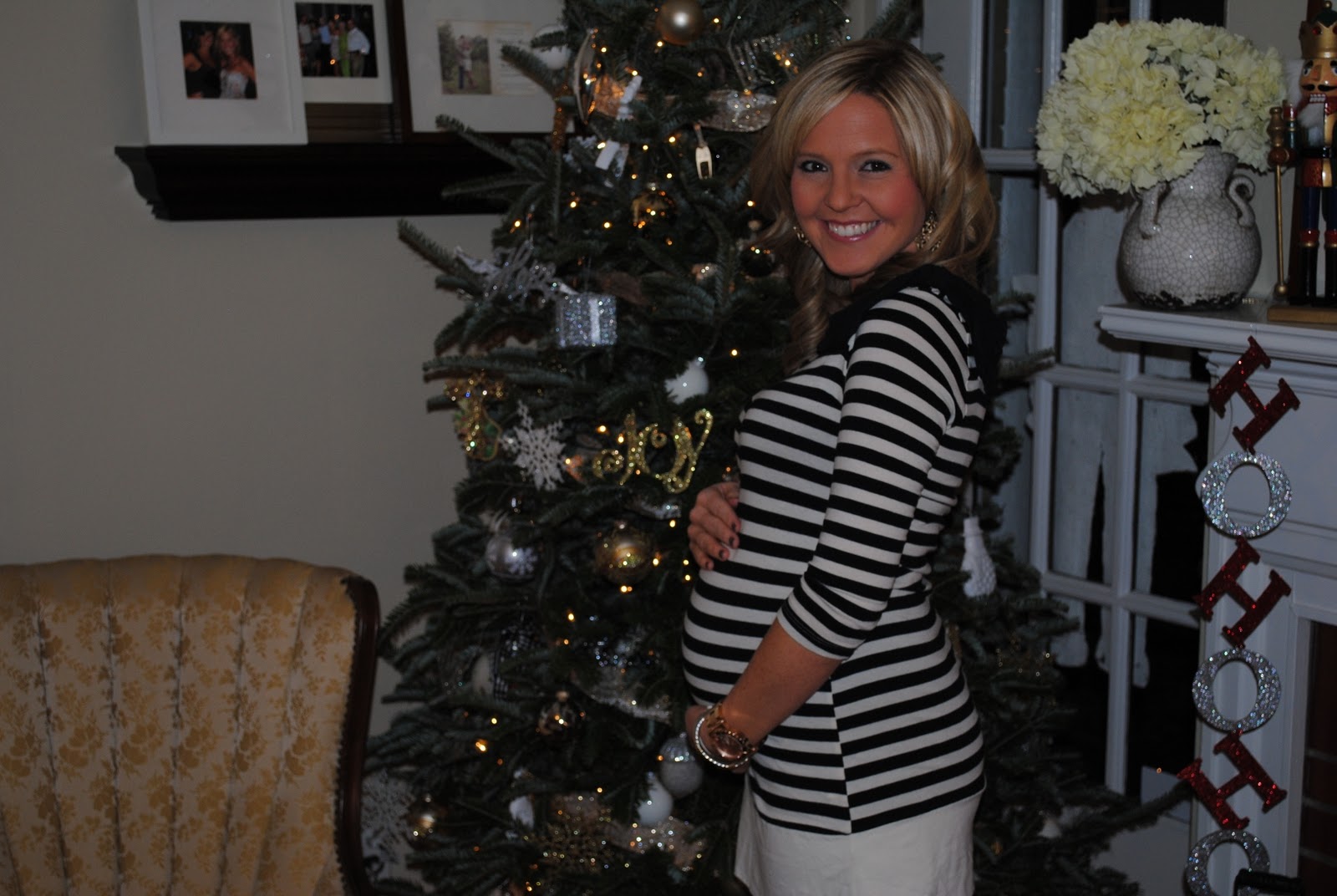 **All dressed up for my company’s Christmas party last weekend!! As I have a feeling I will get questions on where this outfit came from, my tunic is not maternity {WOO HOO} and I bought it at Blush here in Nashville