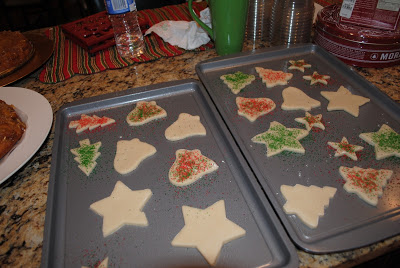 Christmas Eve, Jeff and I ran around town, having one last pre-holiday workout, picking up a few last minute things, and then packing the car to head to Mom and Dad’s…that afternoon, Mom and I got our dishes ready for my grandmother’s house, baked sugar cookies, and then got ready for the evening’s festivities…church and dinner at Ruth’s Chris.