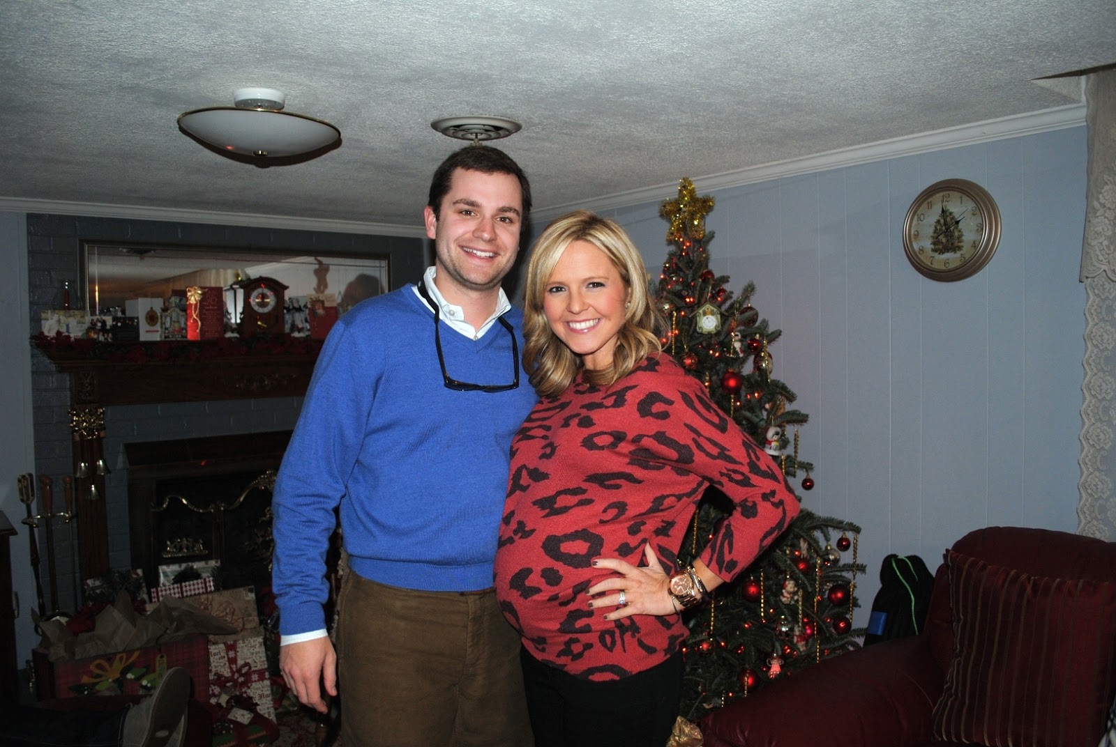 Looks like a very nice Christmas and you are really showing now–you look so adorable and happy! Love your maternity clothes as well!