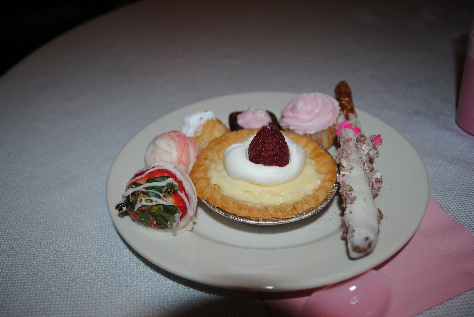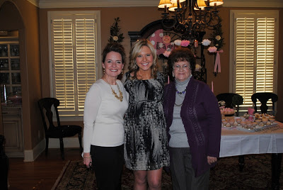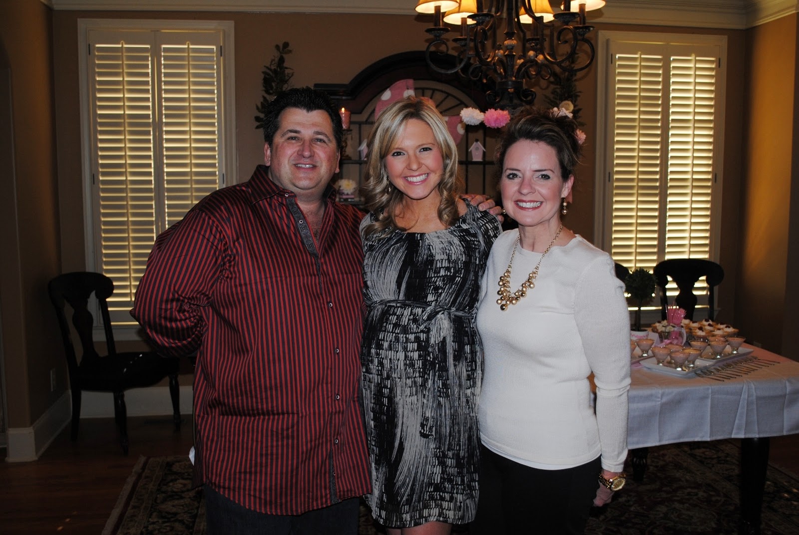 On Sunday afternoon, we headed to my parent’s house for our first baby shower…this one for family! We arrived and when we walked in, I knew Mom, Aunt Denise, and Cousin Lauren had outdone themselves-pink, pink, and pink everywhere! We immediately went in for all the desserts they had baked the past few days…mini cheesecakes, baby brownies, chocolate dipped pretzels, mini cupcakes, champagne salad cups, strawberry cake balls, cream puffs, and white chocolate covered strawberries-am I making you hungry yet?