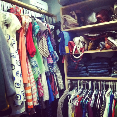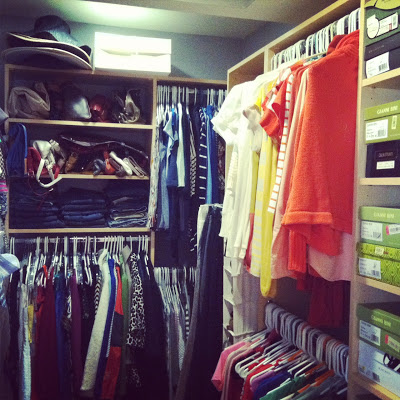 OMG I am super jealous of your closet. I am dieing for a bigger one or for my hubs to move all his clothes out 😉 haha just kidding.