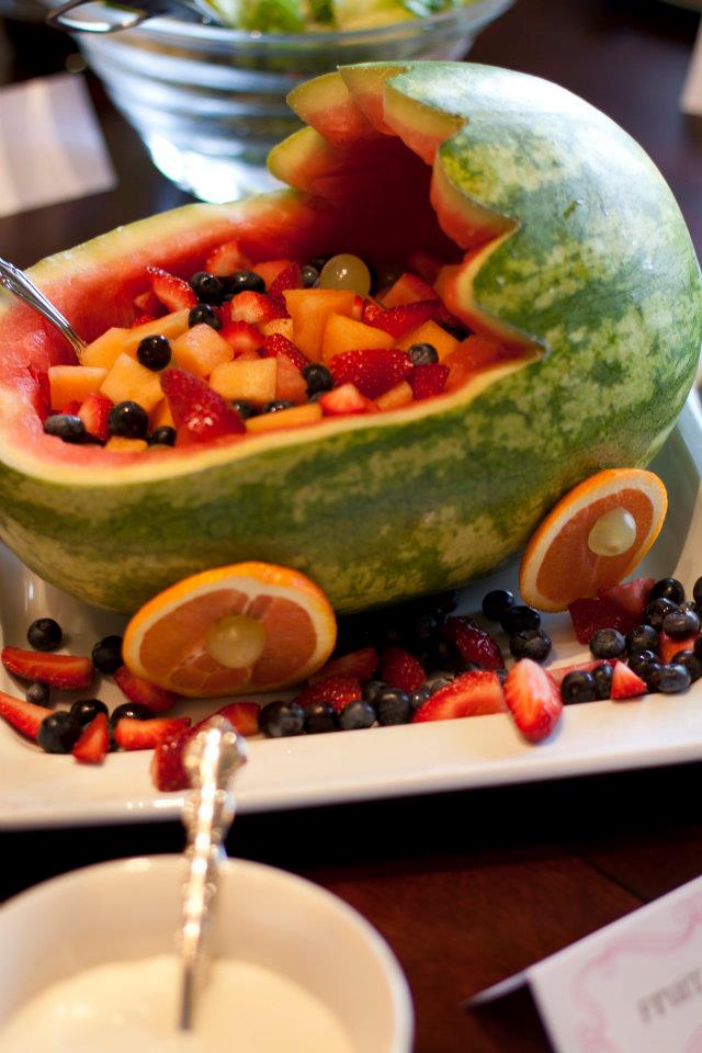 Bev carved this watermelon baby carriage herself–adorable!