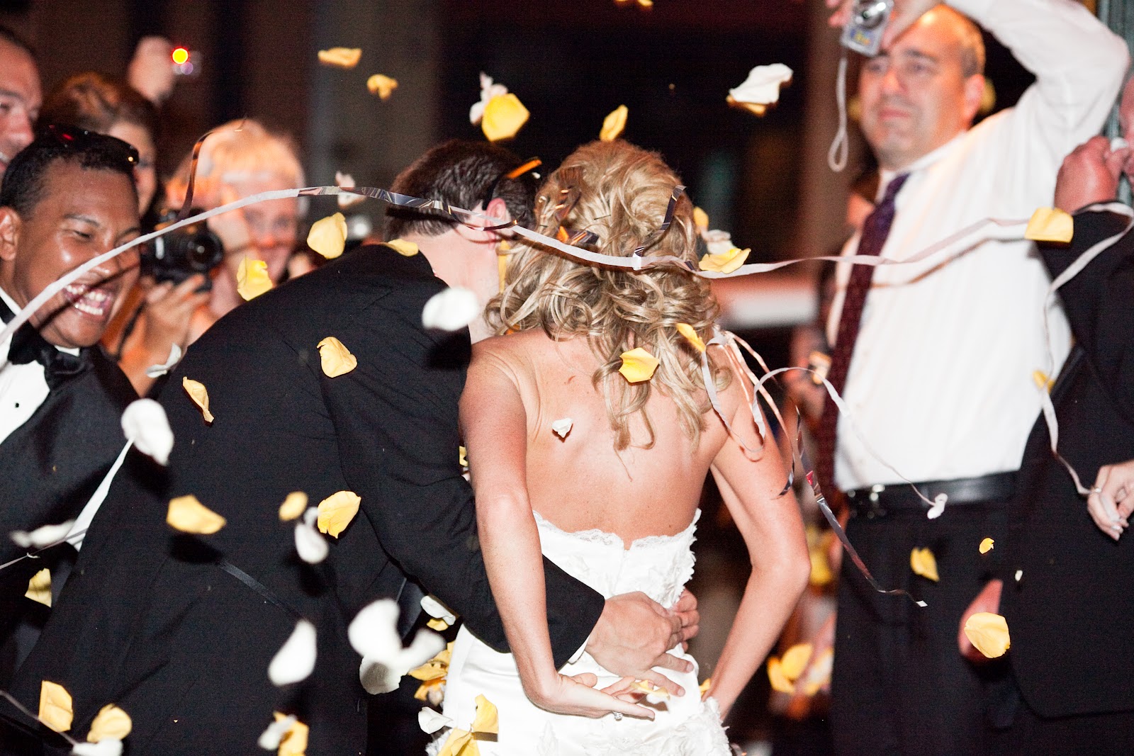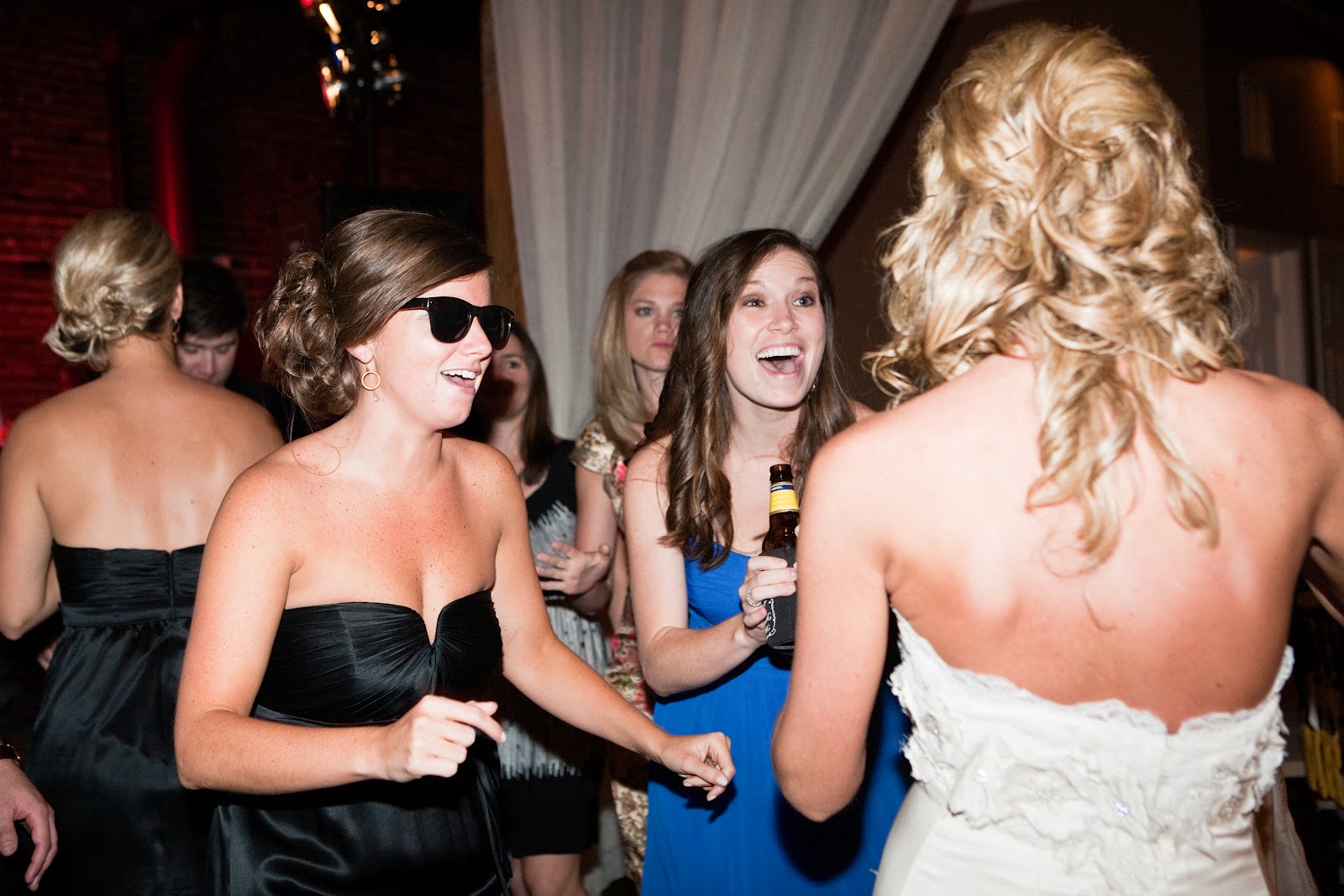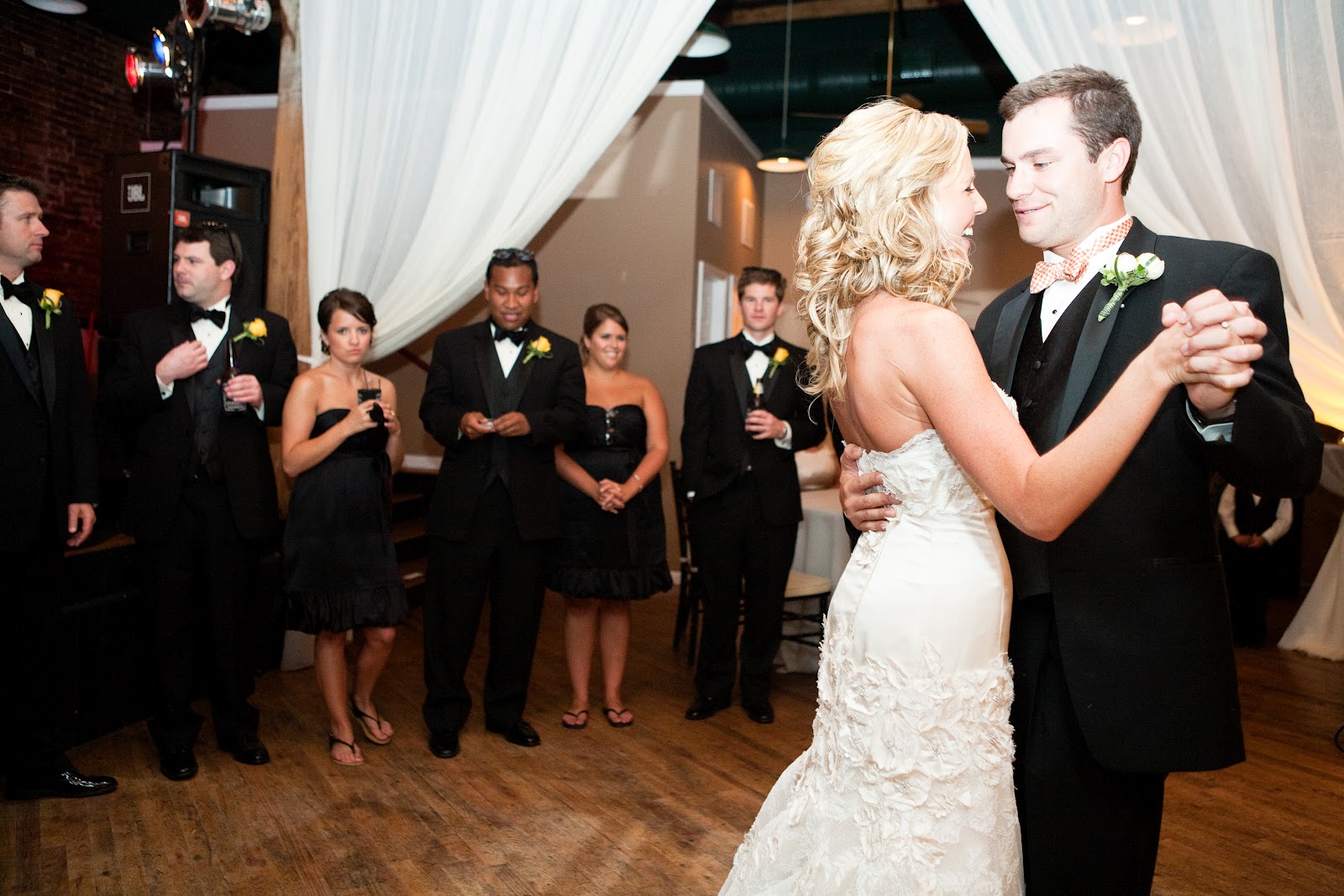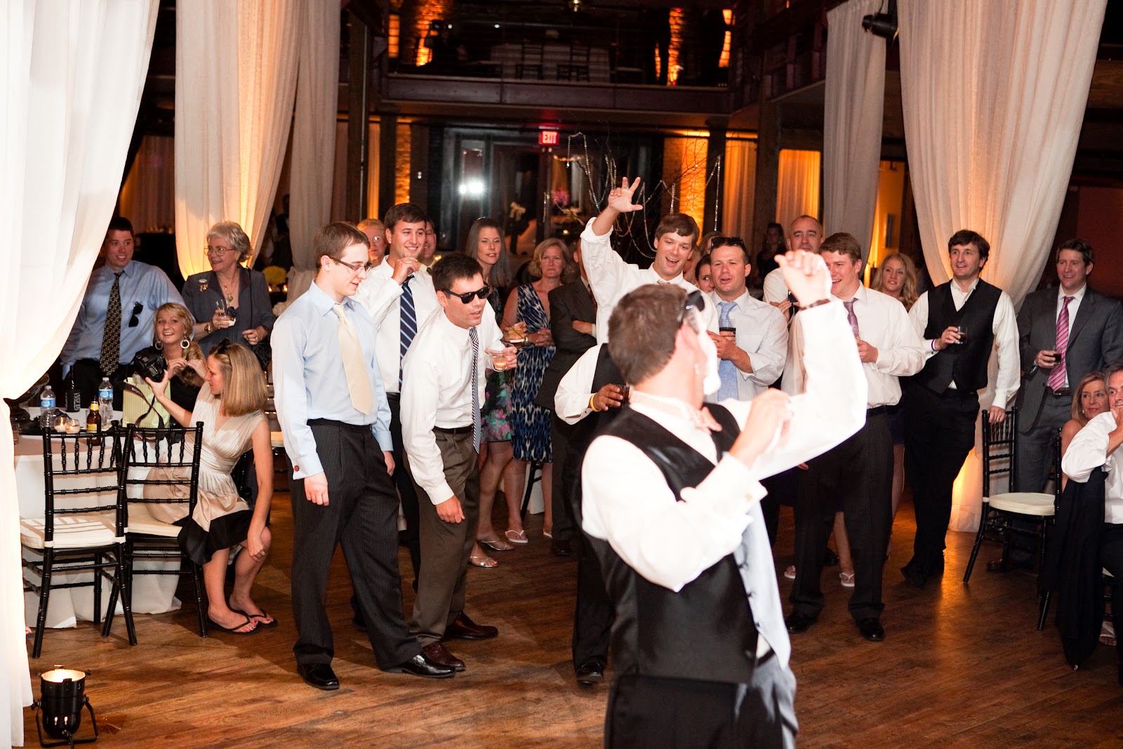 The Bridal Party Entrance: take the “traditional” out and you have exactly what we went for…we wanted a fun entrance, and one of our favorite rap songs just so happened to incorporate colors from our wedding (Wiz Khalifa’s Black and Yellow)-hilarious! We had ordered 50+ pairs of wayfarer sunglasses for everyone {thanks to my Dad} and our bridal party entrances were the perfect way to get the party started.