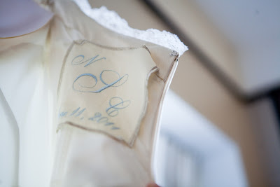 My something blue: monogram and wedding date dress tag from Meg