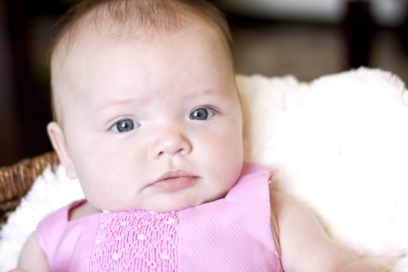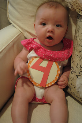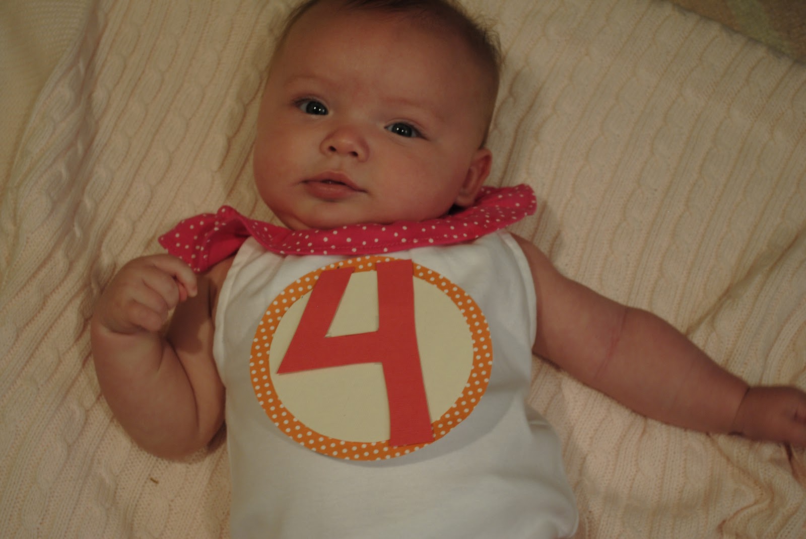 The first picture of her is my absolute favorite! Look at that face!!! It is just precious! Happy 4 months to you and your family 🙂