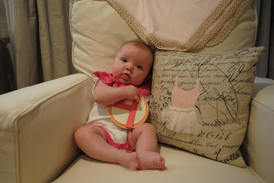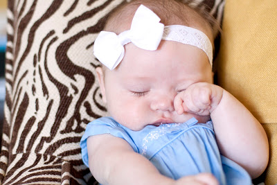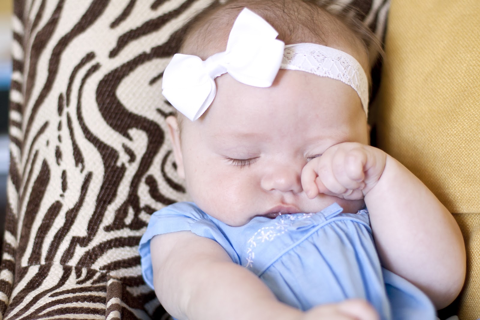 Natasha-she is so stinkin cute! I love her little dress and headband! Adorable! I think my little one might be cutting teeth too? He just turned 4 months on Monday. He just had his first try of rice cereal soo fun! That is awesome she is such a good sleeper!