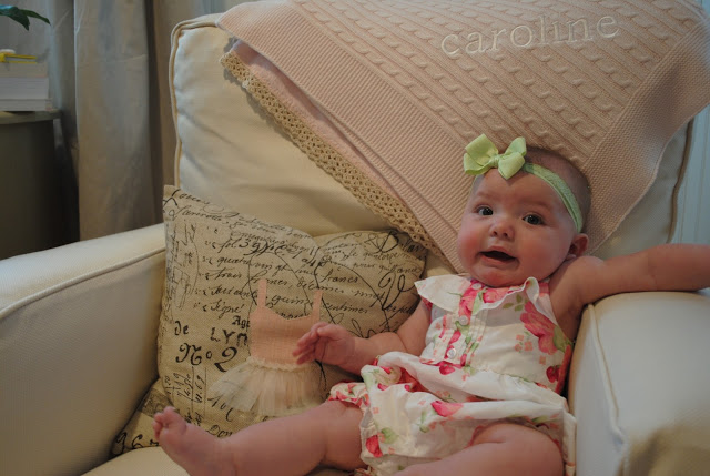 you have developed quite a funny personality my sweet daughter. you laugh, want all toys and books in your mouth, and you arch your eyebrow when you’re investigating (pappy says this is an expression you totally got from me). this past month has also marked you reaching your arms out when you want someone/something…at times, all you want is momma and you will reach out and look at me with those pouty eyes and my heart just melts. on certain occasions, we’ll sit at home and i’ll just laugh all day at some of your actions…you’re entertaining caroline cate.