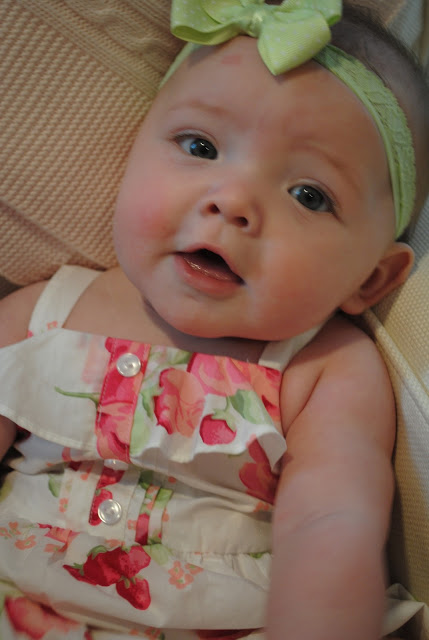She is growing so fast! She's so sweet! And the headband is adorable on her!