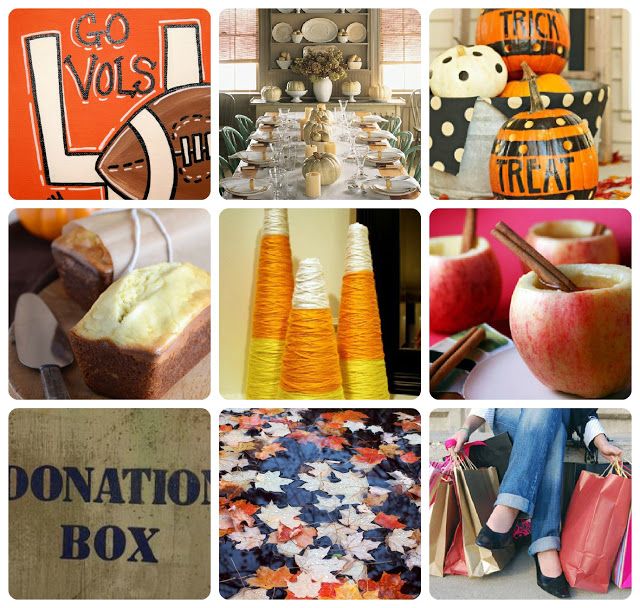 Great fall bucket list! I want to try to make a chevron pumpkin like I've seen seeing all over Pinterest! GO VOLS! 🙂