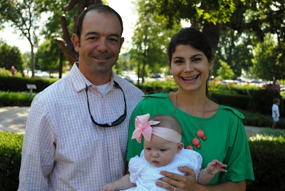 August 19th marked a special day in our world as we had Miss Caroline Cate baptized in front of our church congregation…Jeff and I knew from the minute we welcomed our daughter that this was something important for us as a family, to have our daughter baptized…not only for her, but as an outward sign to those around us to show that we are committed to raising her in a Christian home.