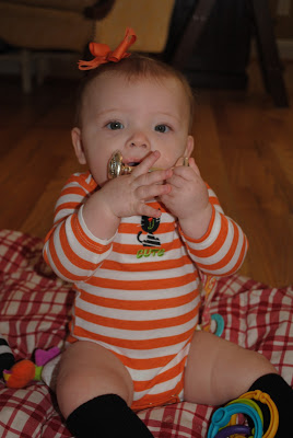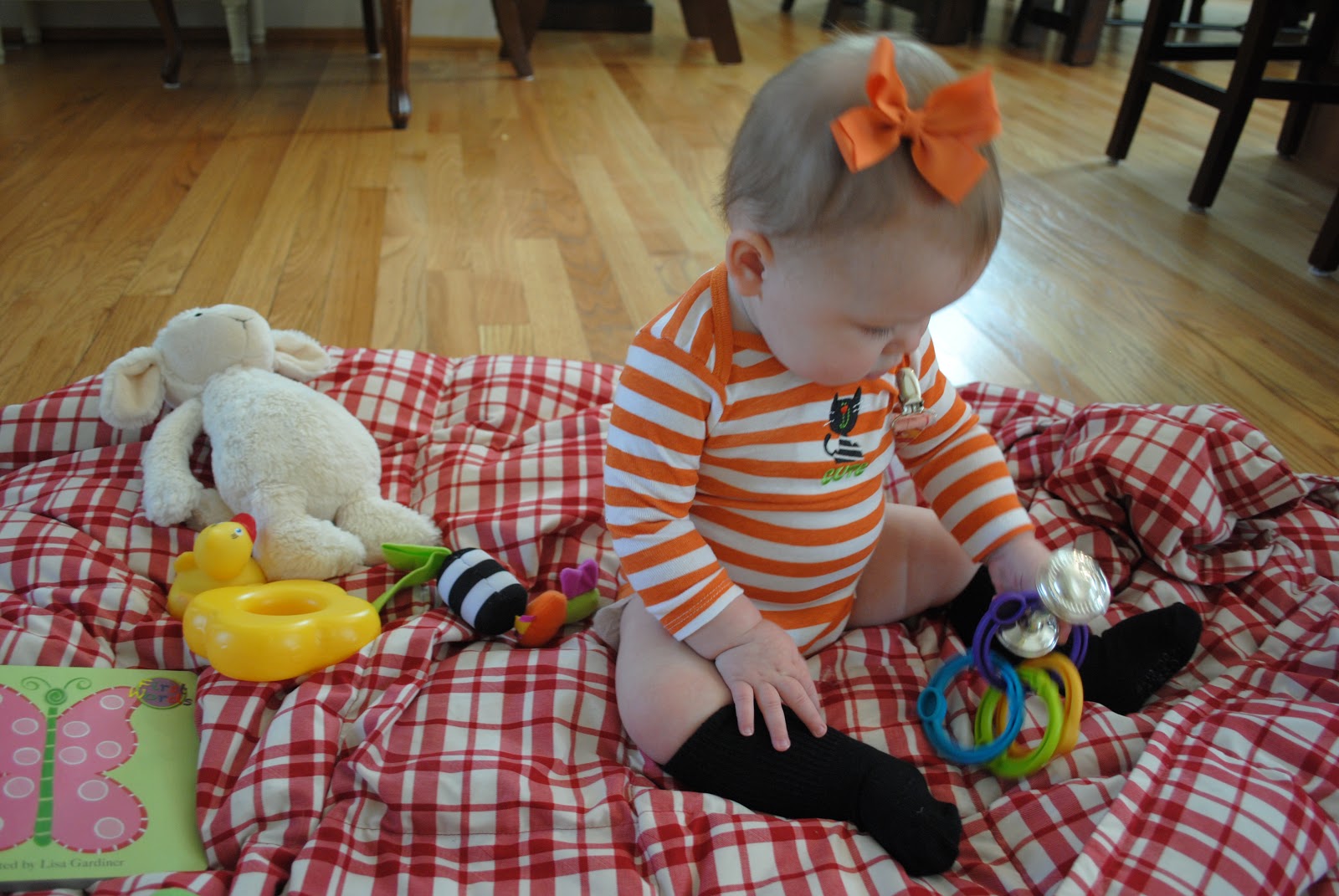 She is just so sweet! Can't believe she's sitting, crawling and has bottom teeth! Time is flying by waaay too quickly!!