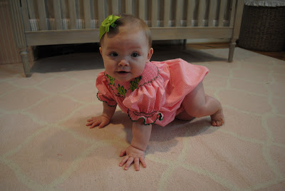 And as for another HUGE milestone, just this past week you decided it was time to crawl! It first happened the night I hosted bunco and all the girls were over. We plopped you down, put the iPhone in front of you for bait, and then let you go for it. We were all cheering and screaming and you definitely put on a show Caroline. Then on Friday evening, you decided to do it again while we were downstairs and I was fortunate enough to get it on video so we could show everyone. You are officially on the move my little one so I know we better watch out and finish babyproofing ASAP.