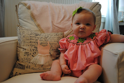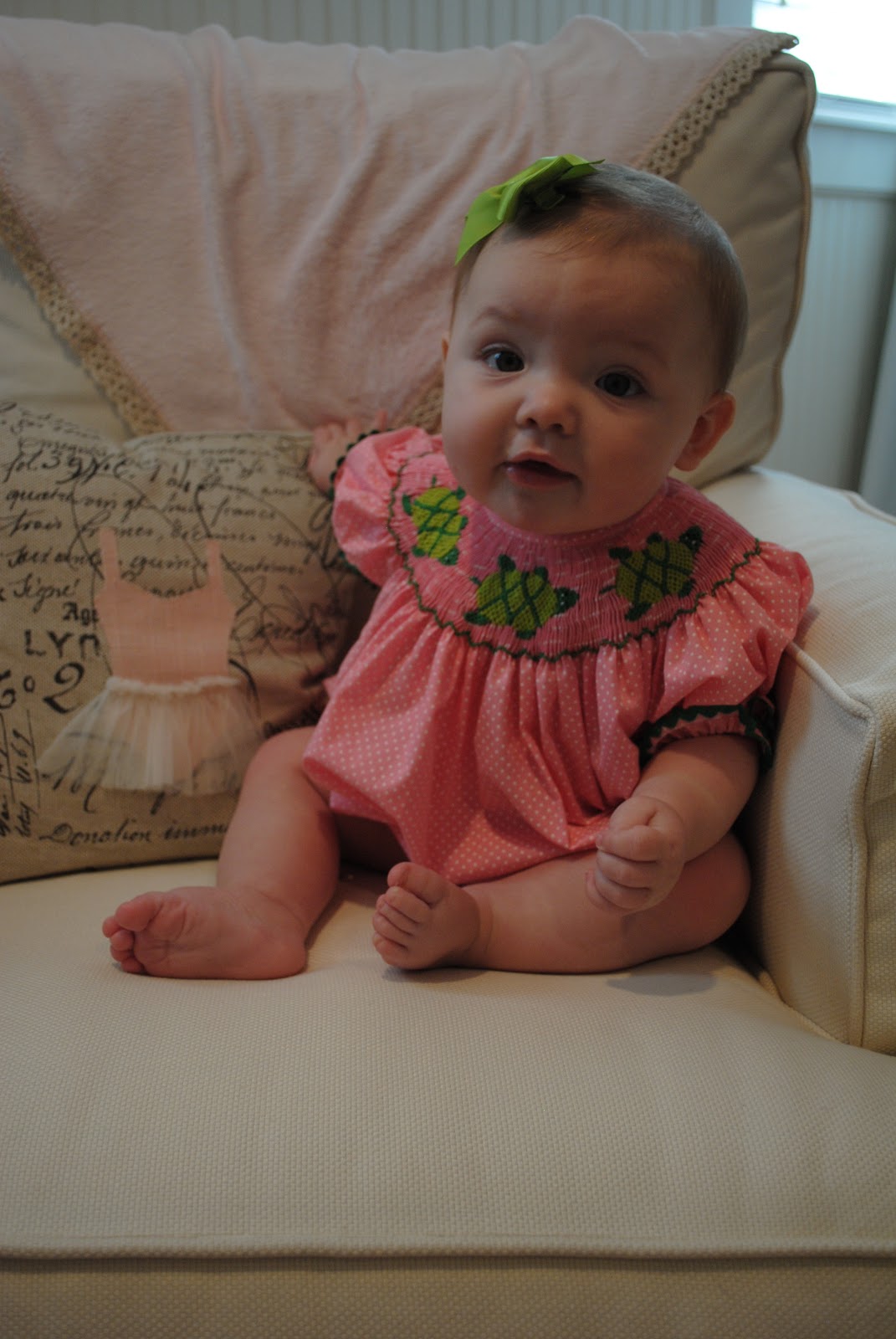 Oh, the fun! My all time favorite thing is when baby's start making those funny little faces at her age. Oh, the cuteness! She is absolutely adorable! Let me tell you it goes by so fast. I'm so happy you get to be home with her for every single moment. You will always look back and be so happy you did. I love following your blog for all the girly things. I have 3 sweet sons and was blessed with a daughter 6 months ago. Let's face it, being a girl is so much fun! Where did you get Caroline's little clip bows? She looks so sweet in them. She is a little gift for sure! 😉