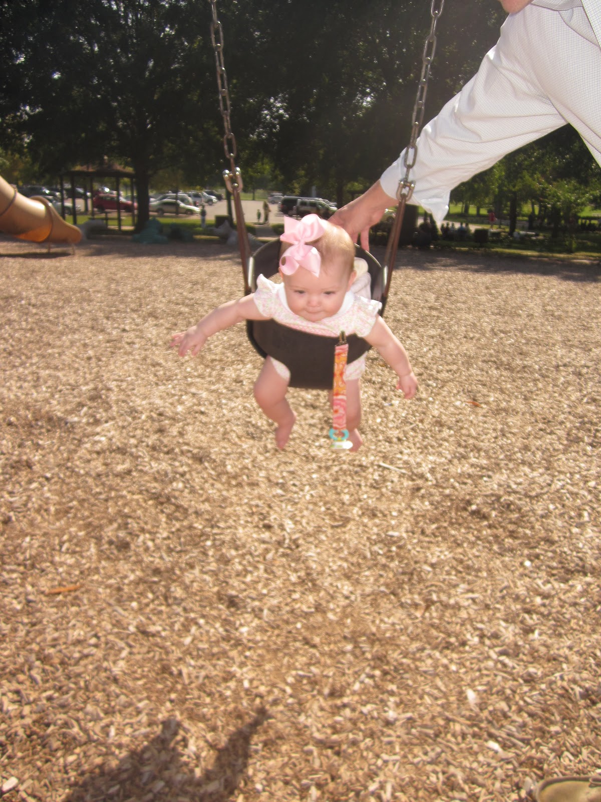 We took you to the park for Daddy’s company picnic the last weekend in September and we wanted to see if you were ready for the “baby” swing at the park…Mommy was a bit weary, but as soon as we put you in, you got super excited and we knew this was going to be a hit! Of course I managed to get a few shots of you, too!