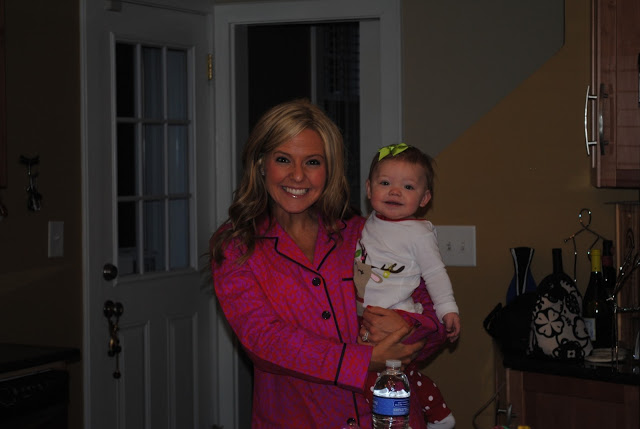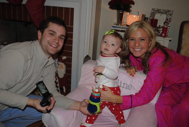 How cute are those pink jammies you wore!?!? So fun!! 🙂 Glad Caroline had a rockin first Christmas!