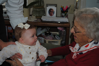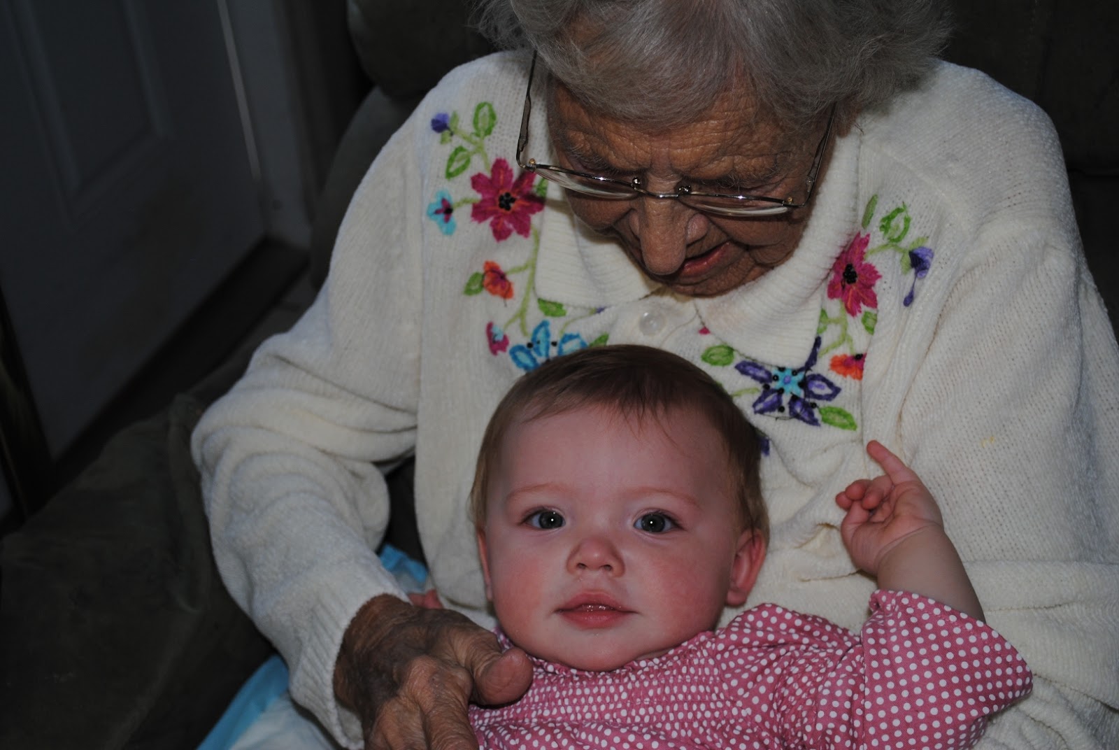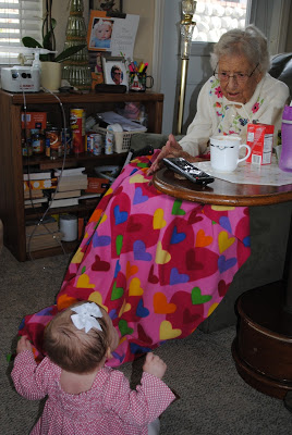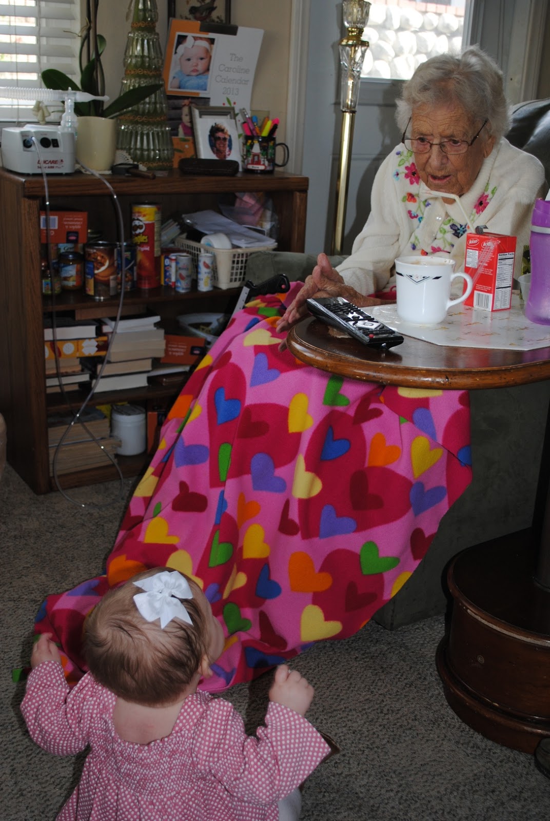 Love this pics of Caroline with her great grandma… so precious! And great grandma's got an awesome little set up going in her house. Everything within reach and a festively bright blanket. I want to be just like her when I'm her age, haha!! Looks like you had a short visit out to CA, but a wonderful one. How special!!