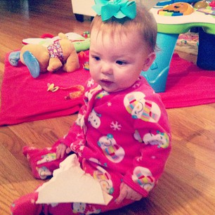A Growing Girl Indeed. I can’t believe I’m saying this, but you’ve already got 6 teeth little one. Four on top and two on bottom…and when people say teething is hard work, that is most certainly NO LIE. You’re doing pretty well in learning how to eat “bigger” foods and chomp at the bit when I have something you want to taste. You are in size 3 diapers and still wearing 6-12 month clothing, and I estimate you weigh about 20 pounds. You’re still leaning out, but those fluffy fat cheeks and little pot belly are still there and it’s so cute I can hardly stand it. I may kiss you 1,000 times a day.