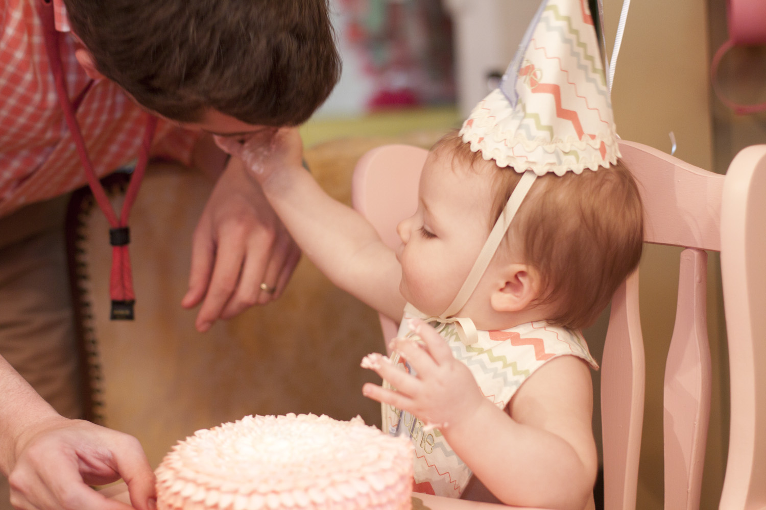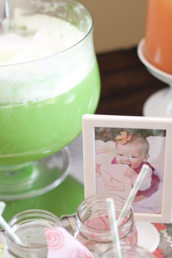 On to more important things…our special guest, Miss Caroline Cate. She had a sleepover the night before at Mimi and Pappy’s house (thank heavens!) so we could finish everything before her “arrival”. In true fashion, she was having her morning nap when she got home, so we gave her a bit to get her beauty sleep in. Once she woke up and saw all our friends and family there, she was a ham (as usual) and ate every minute of her special day up. For those interested, I bought her mint green dress on Zulily, her white shoes are Pedipeds, and her pink bow came from a local store, The Plaid Rabbit.