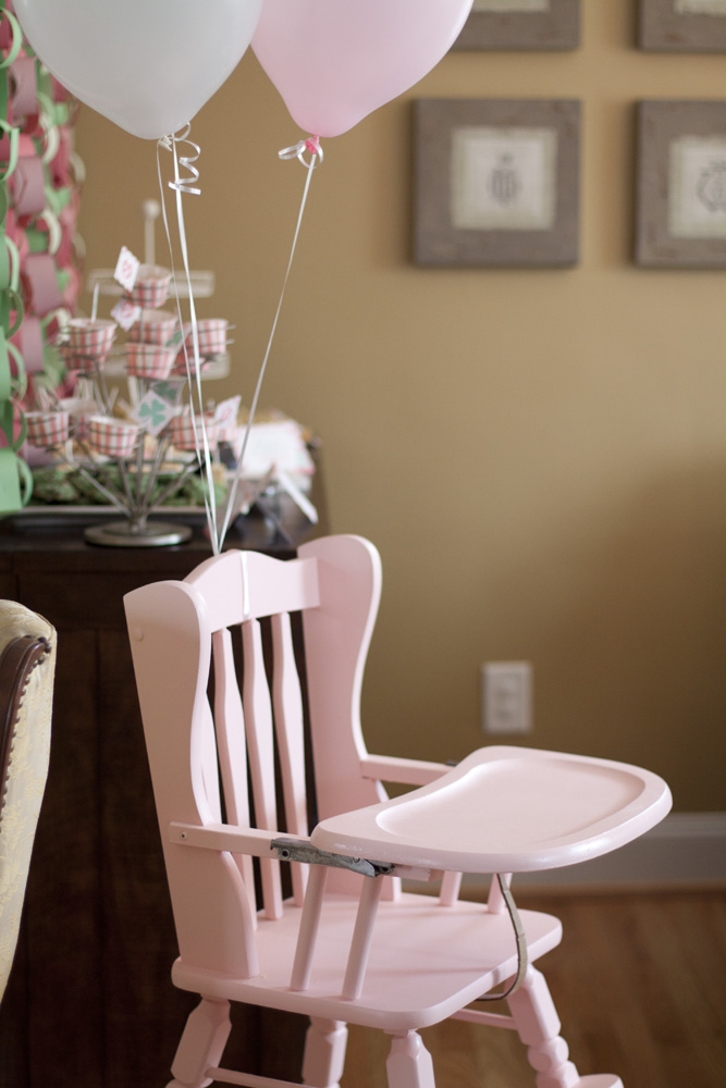I loved her party! You did an awesome job. I am knee deep in the middle of planning my daughter's first and am starting to panic. Where did you get the gorgeous pink high chair! It looked awesome in pics.