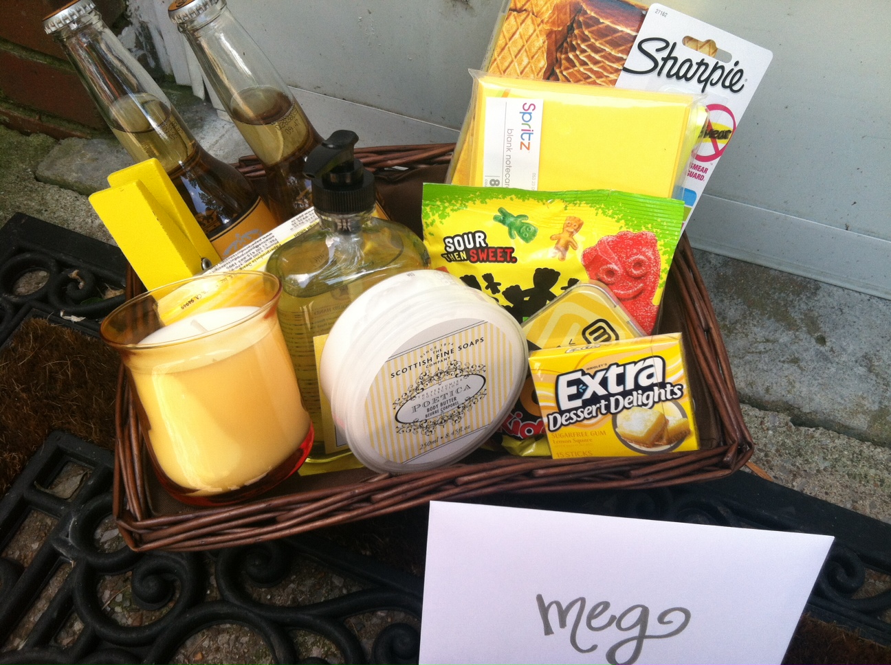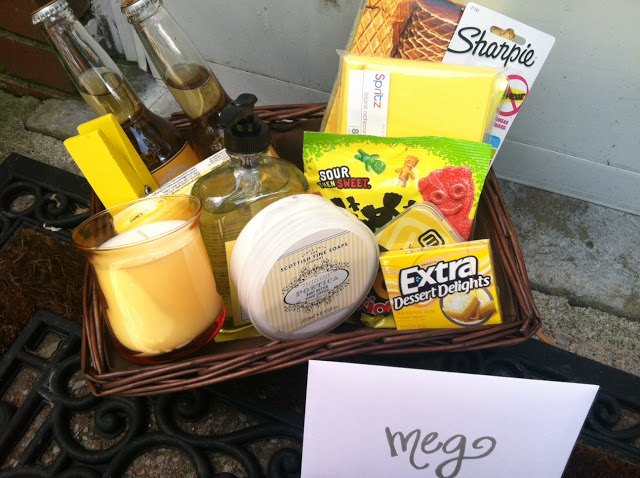 I love the yellow/sunshine basket! The beer is a great touch 😉