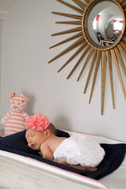 Natasha – she is just gorgeous! I love the announcements you chose. And her nursery is AMAZING. Did I miss the post about it or did you not do one yet? (Not like you don't have your hands full, right?!?!) I'd love to see more of it! Better yet, can I just move in? If my husband would go for it, I'd love a navy and coral bedroom. And the mirror over her changing table is fabulous!