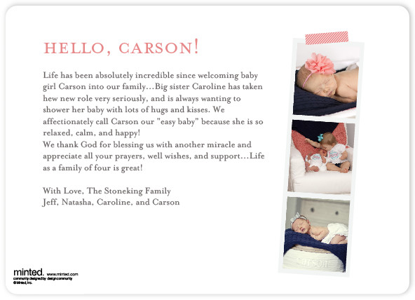 Congrats again on sweet Carson.